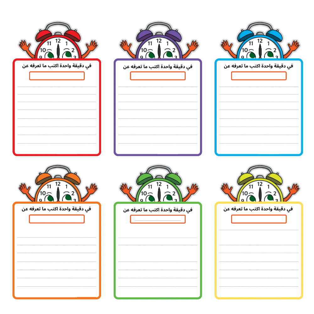 📝 ٦ بطاقات ملوّنة بتصميم ساعات لطيف ومشوّق