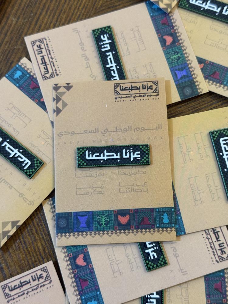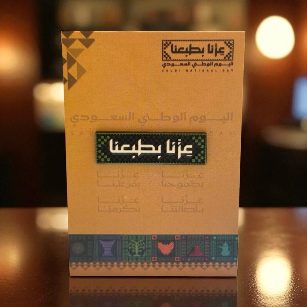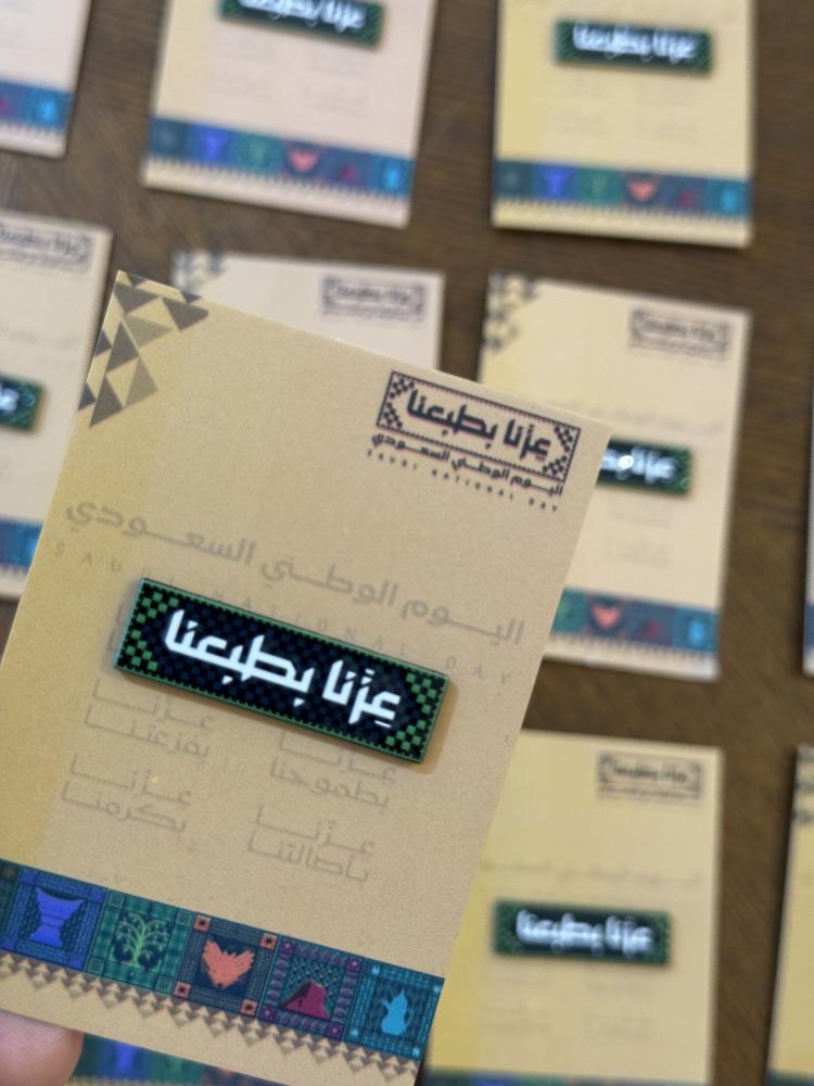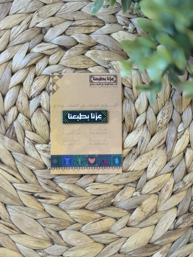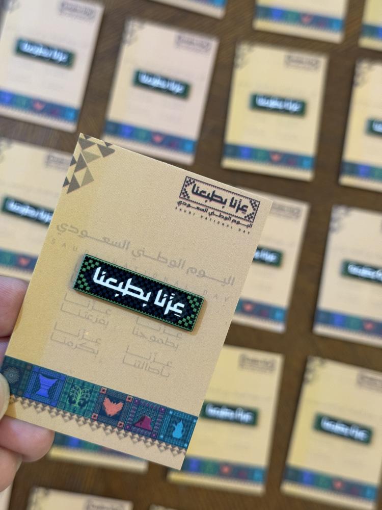 - بروش معدني فاخر بشعار اليوم الوطني “عزنا بطبعنا” مصنوع من الحديد بجودة عالية، يضفي لمسة فاخرة على ملابسك أو حقائبك.