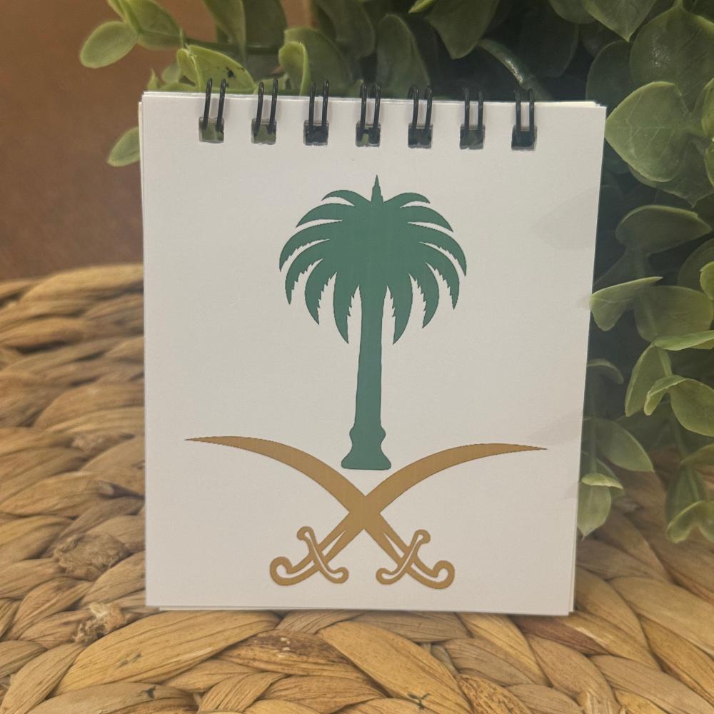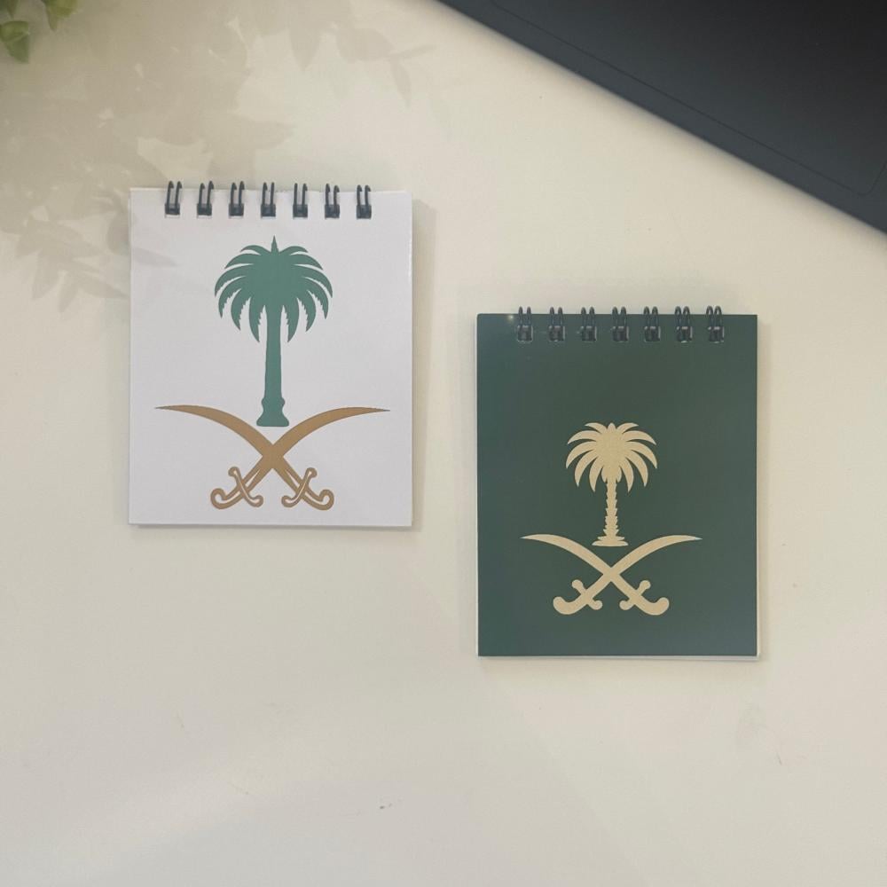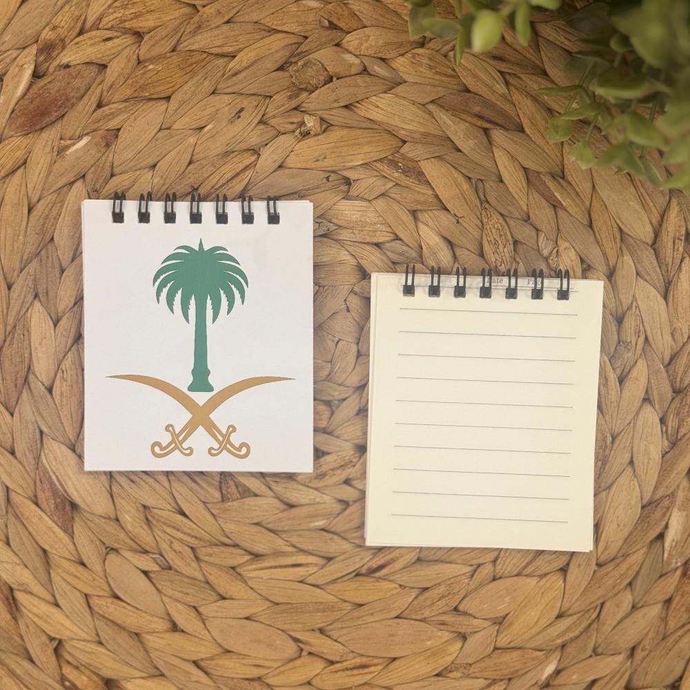 احتفل باليوم الوطني السعودي مع نوتات صغيرة مميزة بطابع أنيق تحمل شعار السيفين والنخلة 🇸🇦.