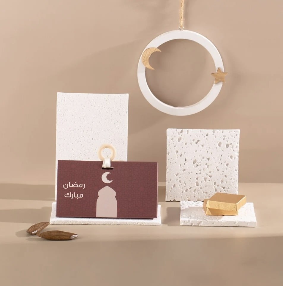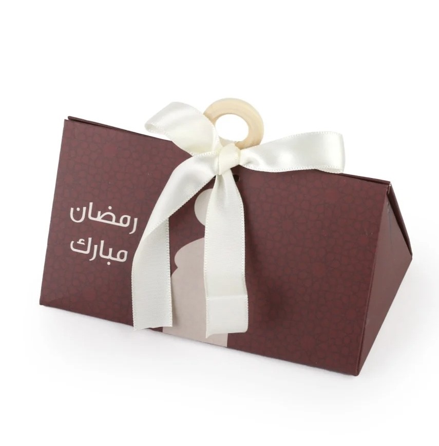 لون احمر عنابي مع شريطة بلون ابيض بعبارة"رمضان مبارك "