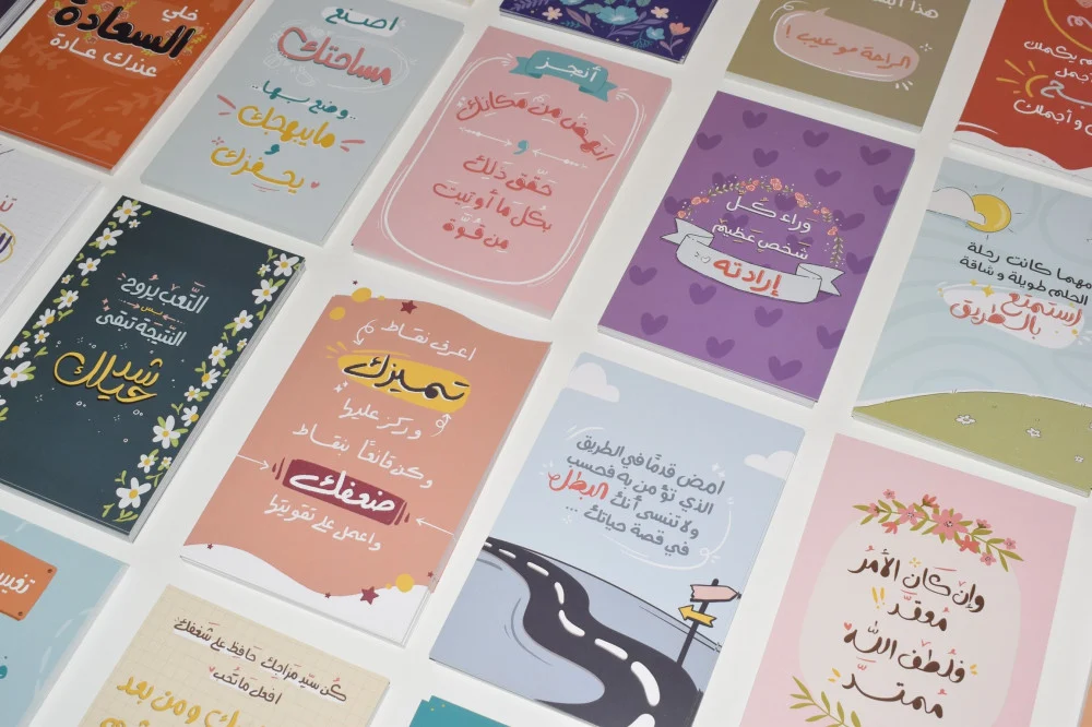 يحتوي على 40 بطاقة تحفيزية مرسومة يدوياً وحامل خشبي ..
