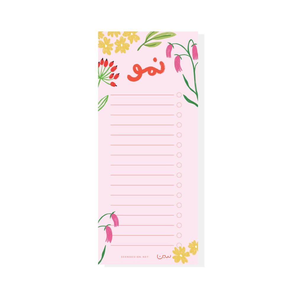 قائمة مهام – من مجموعة “نمو” لتنظيم يومك بجمال وهدوء، تأتيك قائمة المهام هذه من مجموعة نمو، بتصميم أنيق مزين بالزهور الجميلة التي تضيف لمسة من البهجة لكل مهمة.