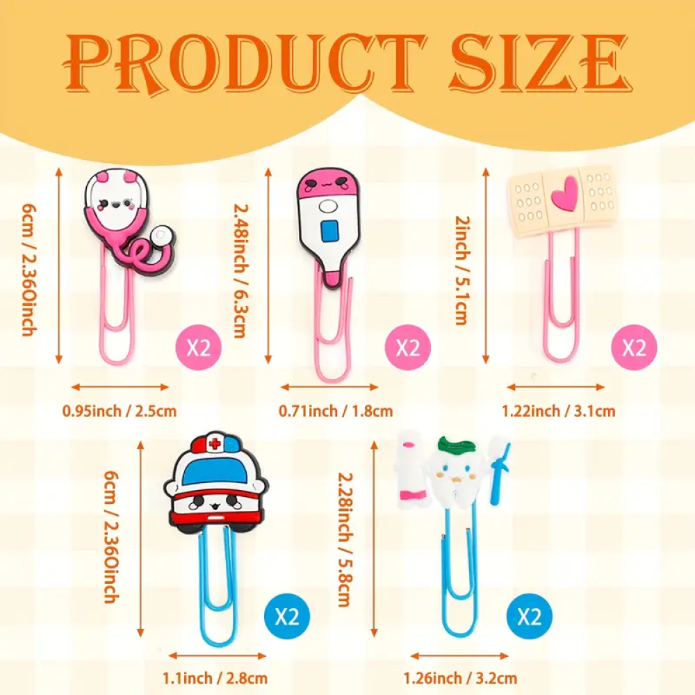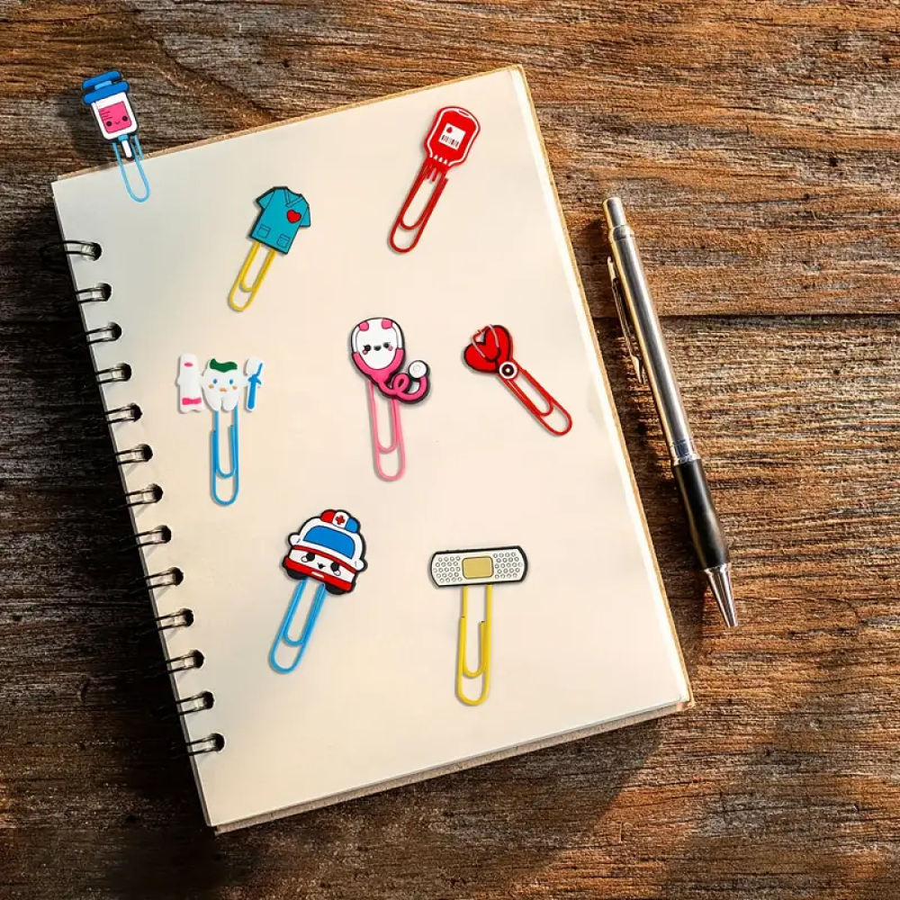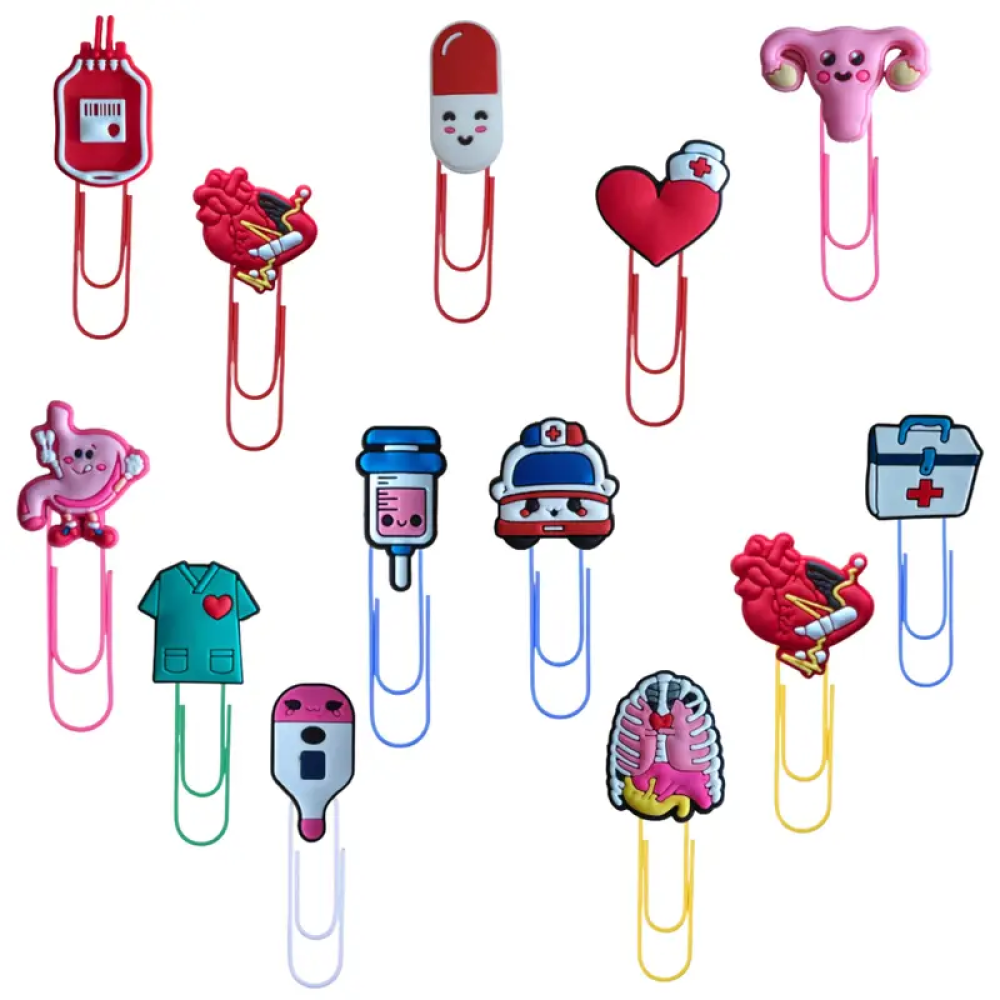 مشابك ورقيه مع قطع من المطاط مخصصه بصور خاصة للاطباء والممرضين