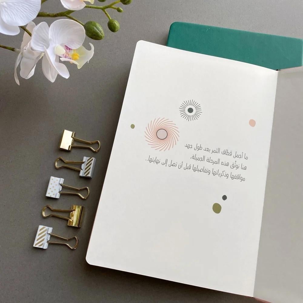 وهي مصممة لتساعدك في الحفاظ على ذكرياتك الجميلة فهناك مكان لتدوين بعض ذكريات البحث والعمل، وصفحات أخرى ليدون لك الآخرون كلمات للذكرى..