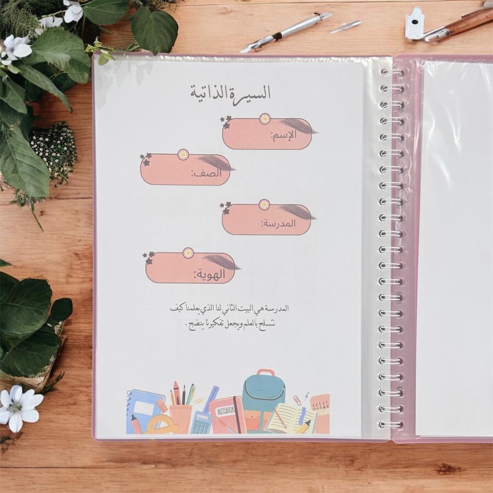 📘 ملف مميز يساعد الطلاب على تنظيم إنجازاتهم المدرسية وتوثيق أعمالهم بشكل مرتب وجذاب.